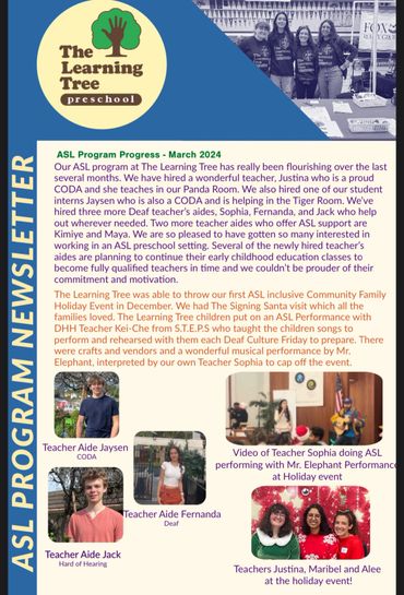 Our festive, family-friendly tradition brings everyone together for holiday crafts, local vendors, and community resource tables—plus special performances by Ms. Ariel’s Dance Class and our preschoolers signing songs. The highlight? A magical visit from Signing Santa for smiles, photos, and holiday cheer!